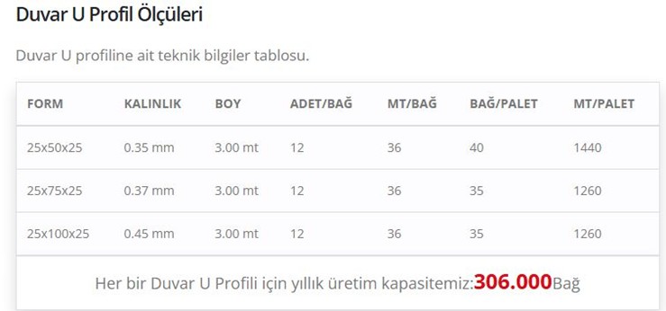Bölme duvar, giydirme duvar, asma tavan ve dış cephe uygulamalarının yapımında kurulan metal konstrüksiyonda duvar c profillerine kılavuz olmak ve teraziye alınmasını sağlamak için kullanılan, sıcak daldırma galvanizli çeliklerden, soğuk şekil verme yöntemi ile üretilen tamamlayıcı elemandır.
